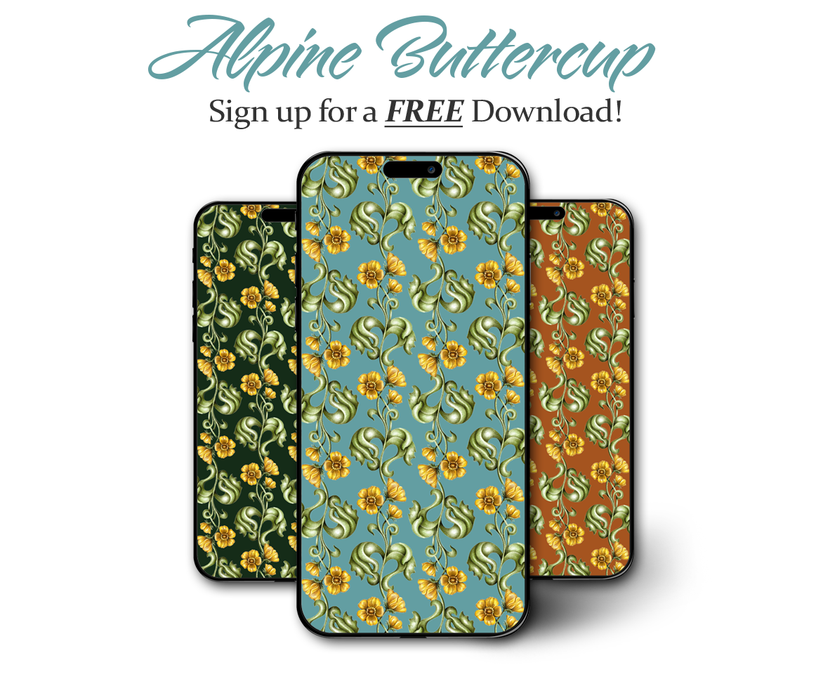 Sign up for my newsletter below and get a variety of my Alpine Buttercup patterns (and some bonus patterns too!) for your mobile device! By signing up for the newsletter, you will get updates from the studio, insights into work in progress, access to finished work, and more. No spam!